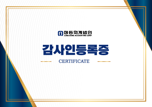 (상단 이미지를 누르시면 정동회계법인의 감사인등록증을 확인하실 수 있습니다)